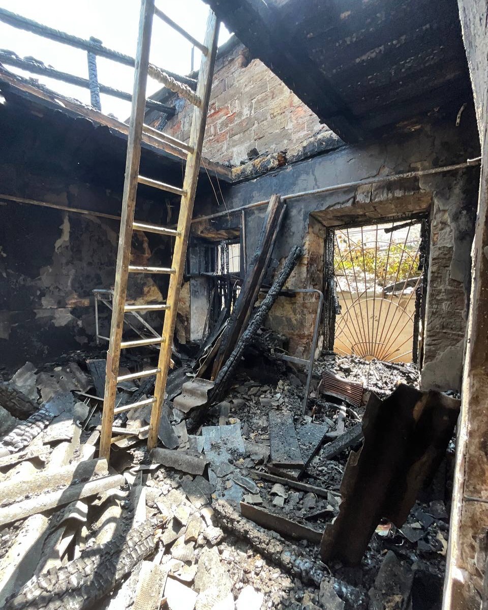 На следующий день после трагедии семья участницы "МастерШеф-16" начала разбирать завалы: выбрасывать обгоревшие и поврежденные вещи, убирать стекло, выносить остатки конструкций.