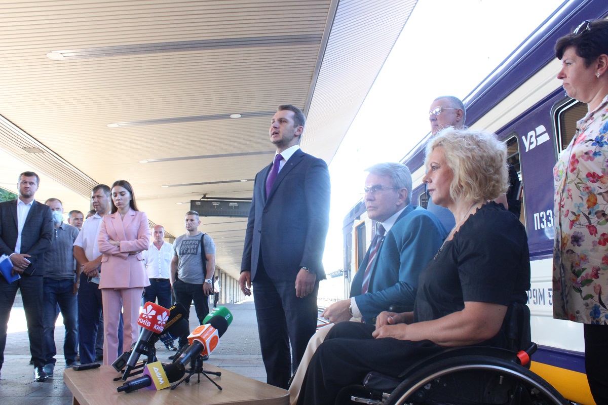 В Киеве по междугородному маршруту будет курсировать инклюзивная электричка. 9 июля "Укрзализныця" представила первую обновленную электричку с пандусом, местами для людей с инвалидностью, а также местом, где можно припарковать велосипед.