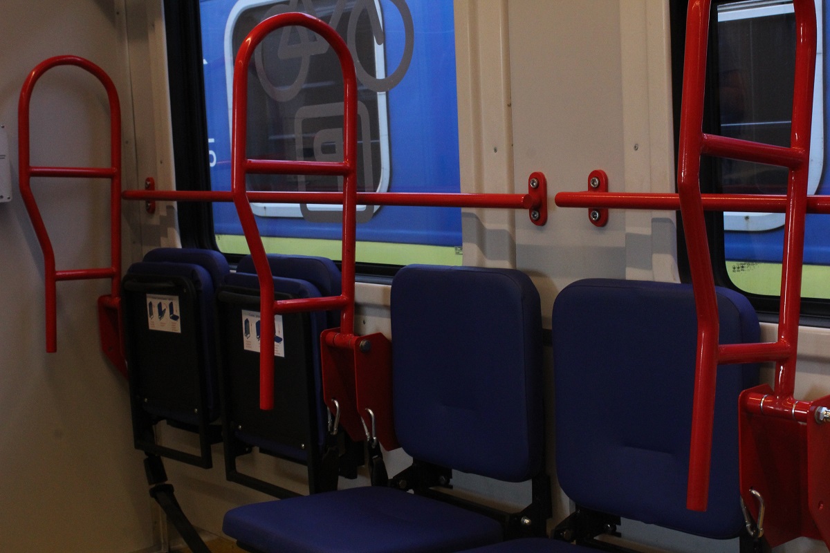 Весь поезд состоит из более 5-ти вагонов. Один из них оборудован специальным пандусом для людей, передвигающихся на коляске. Внутри у входа располагается специально приспособленный туалет, закрытый для других пассажиров. Чтобы его открыть, нужно нажать кнопку для вызова работника.