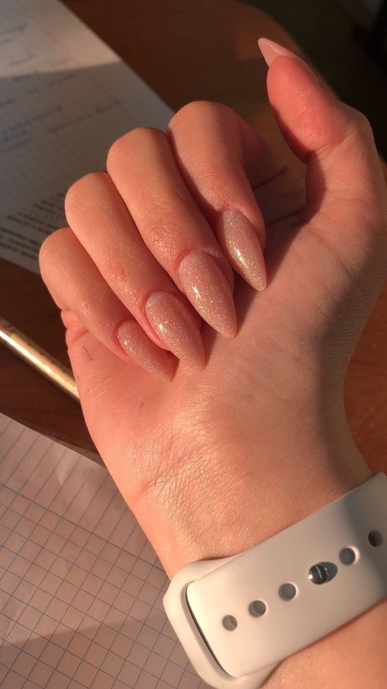 Или же покрыть базовым покрытием и блестками – это вариант будет и стильным, и простым в исполнении.