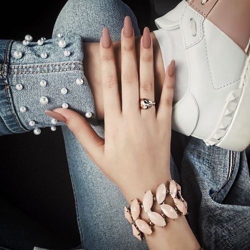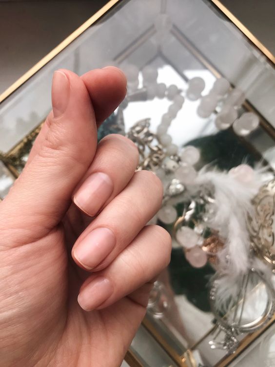 Во-вторых, можно покрыть ногти нежным телесным оттенком.