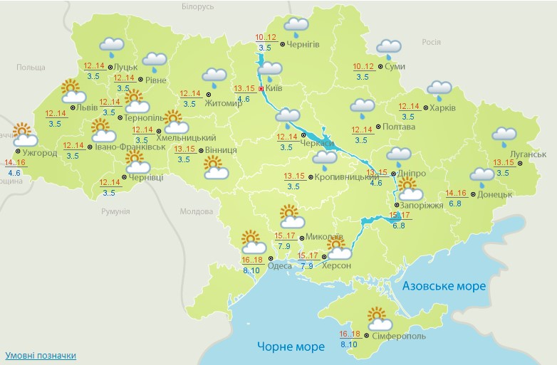 Что касается температурной картины, то на севере и востоке синоптики прогнозируют +16+19, в северо-западных областях и в центре будет +18+22, а в юго-западных областях и на юге будет от 20 до 24 градусов выше нуля.