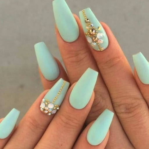 Для создания более нарядного образа можно использовать различные бусины и стразы. С мятным оттенком хорошо смотрятся украшения золотистого цвета. Также хорошей идеей будет добавить в дизайн немного белого лака.