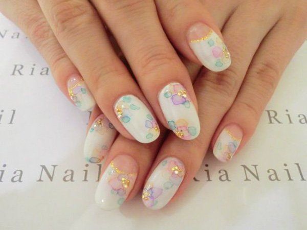 В таком виде маникюра можно использовать различные орнаменты и рисунки, но они должны быть только светлыми и пастельными. Никаких контрастных тонов такой стиль не предусматривает.