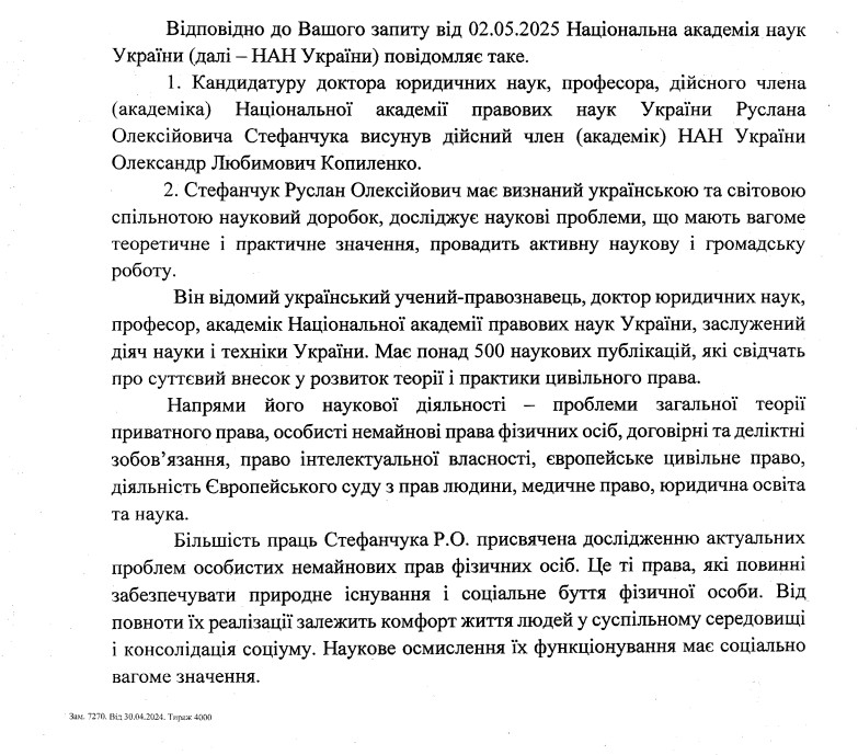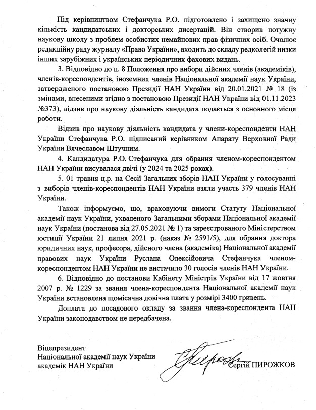 1 мая на сессии общего собрания НАНУ в голосовании по выборам членов-корреспондентов НАНУ приняли участие 379 академиков. Для избрания Стефанчука членом-корреспондентом действительно не хватило 30 голосов.