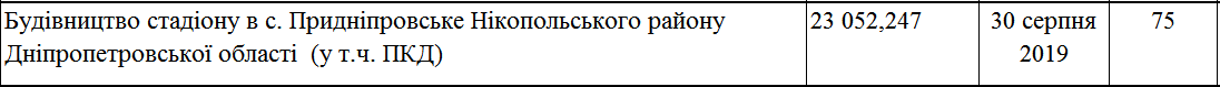 Аналогичная история со стадионом в селе Приднепровское. На середину 2019 года объект имел строительную готовность – 75% и по плану работ должен был быть сдан в эксплуатацию 30 августа 2019 года. На сегодняшний день строительные работы на объекте прекращены.