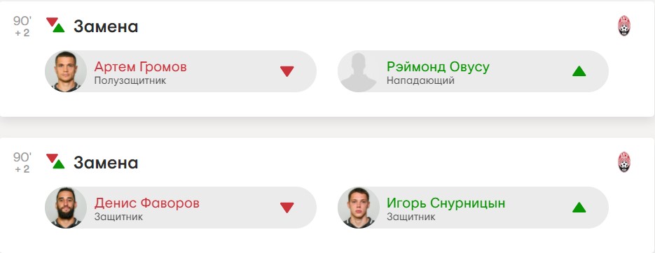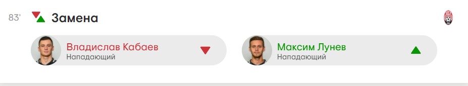 Запасные: 36. Жилкин, 74. Снурницын, 68. Кристиан, 8. Лунев, 9. Шахаб, 47. Овусу, 91. Алефиренко, 11. Гладкий