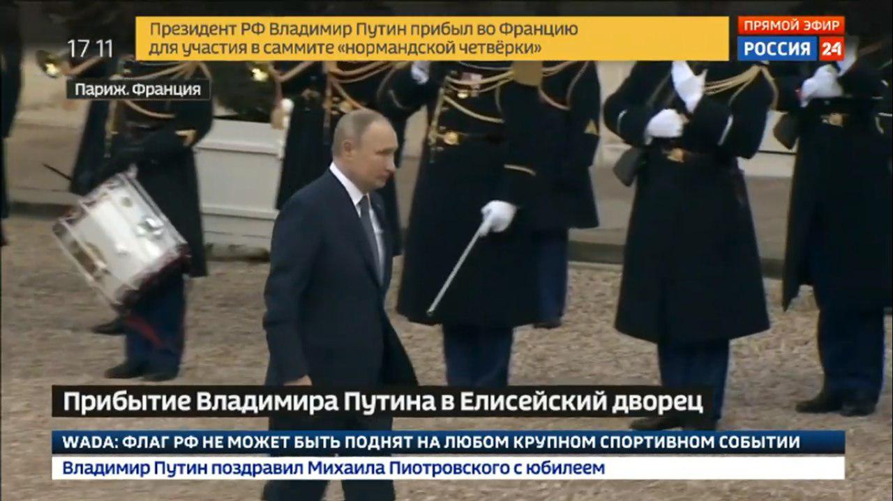 15:50 Президент России Владимир Путин прибыл в Париж на саммит "в нормандском формате". По данным росСМИ, из аэропорта он отправился в Елисейский дворец. Ожидается, что глава Кремля сначала встретится с Ангелой Меркель, а через полчаса - с Эммануэлем Макроном. Дальше начнется саммит "нормандской четверки".