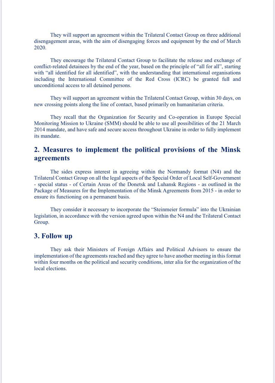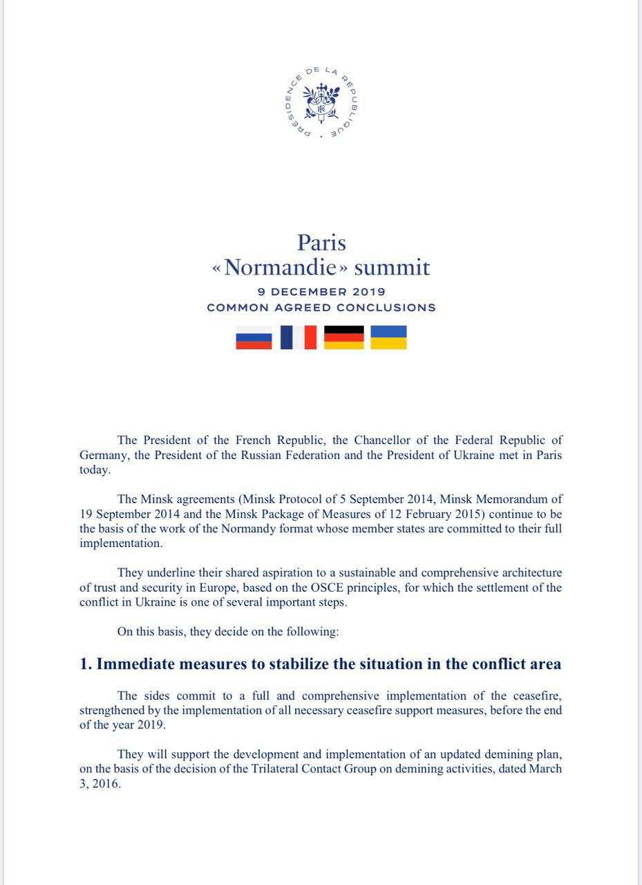 -лидеры "нормандской четверки" заявили о приверженности полному выполнению режима прекращения огня до конца года.