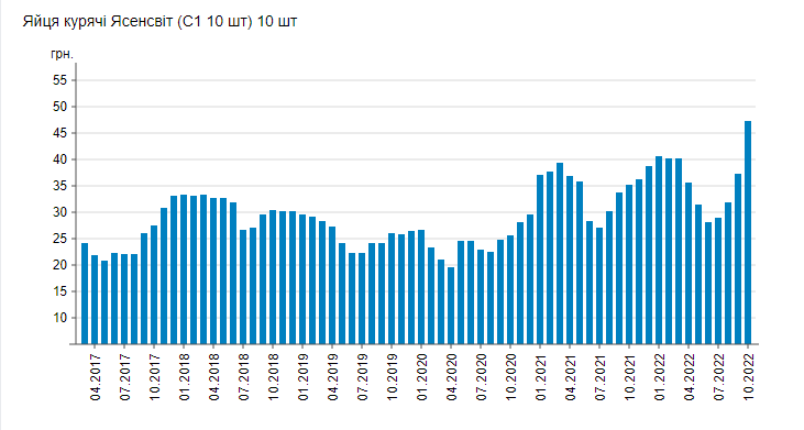То есть цены на яйца вполне равны уровню инфляции в стране. Но почему произошел такой перепад цен, когда еще в начале и в середине лета десяток яиц стоил меньше 20 грн, а сейчас по 60 грн? Экономист объясняет, что яйца в Украине в июне-июле 2022 года стоили даже на 25% меньше, чем за аналогичный период прошлого года. Сейчас же они просто восстанавливают свою цену.