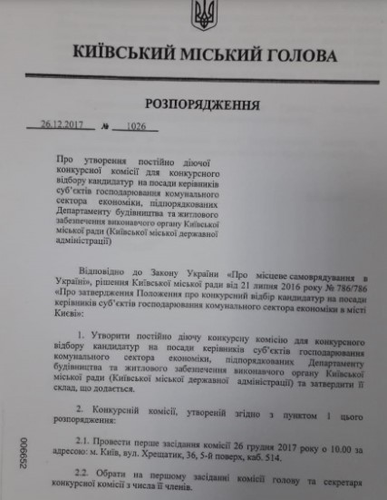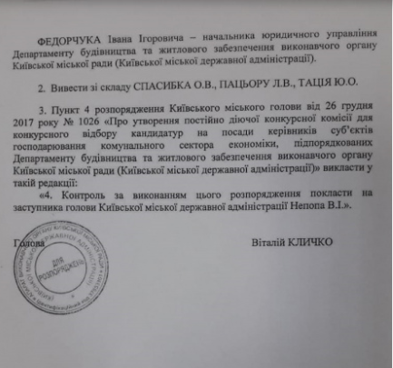 Активист отмечает, что распоряжение инициировал сам Непоп. Он предполагает, что введение новых членов в состав комиссии могло быть связано с желанием получить контролируемого директора "Житлоинвестбуд-УКБ" по итогам конкурса либо вовсе сорвать его проведение.