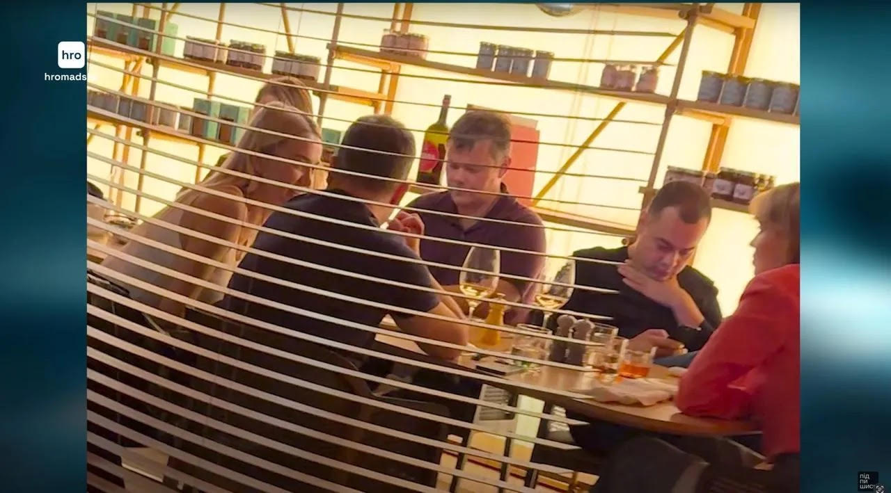 Здесь журналисты зафиксировали трех человек вместе. Сейар Куршутов, известный как владелец Telegram-канала "Темный Рыцарь", находится под санкциями СНБО. Роман Кравец, в свою очередь, был 153 номером в списках партии "Слуга народа" и является владельцем скандального Telegram-канала "Джокер".
