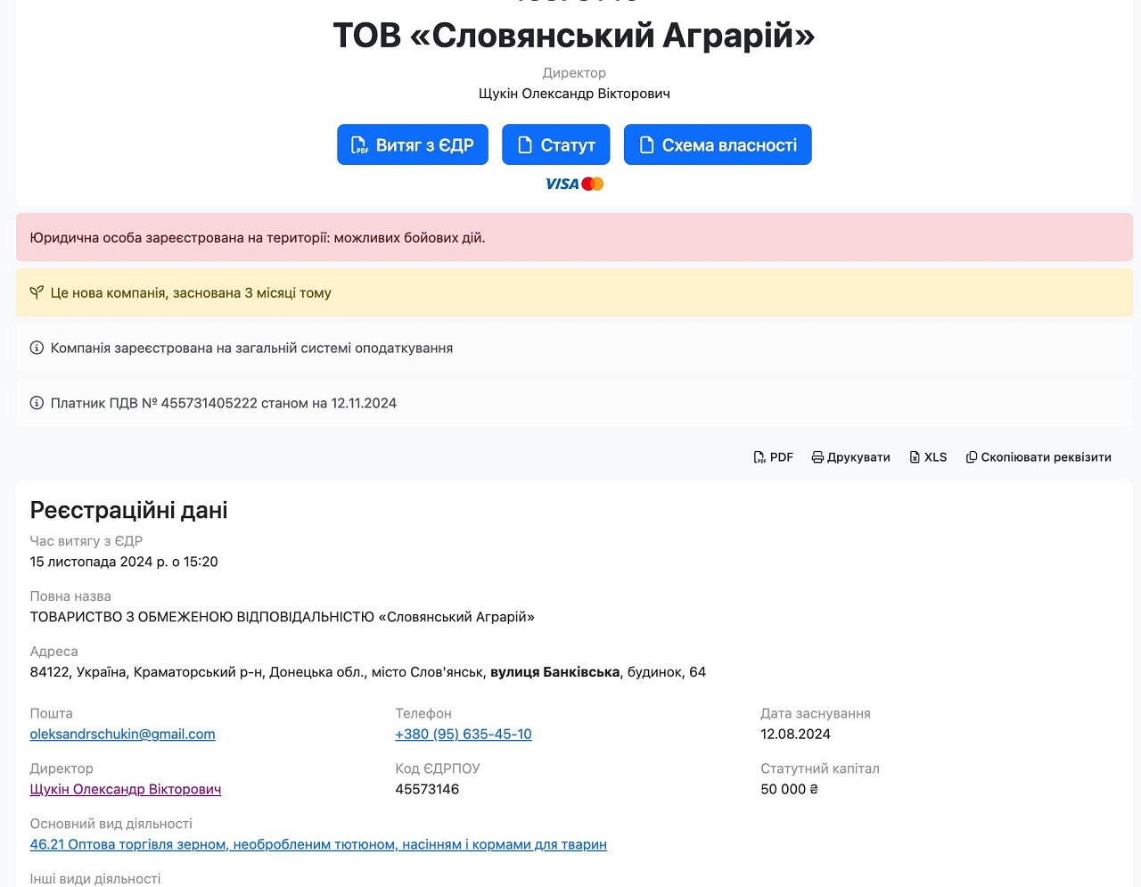 Директор и владелец "Агрария" Щукин Александр Викторович параллельно три месяца назад основал еще и ООО "РЕАЛ", – и тоже в Славянске, и тоже с целью "продажи табака".