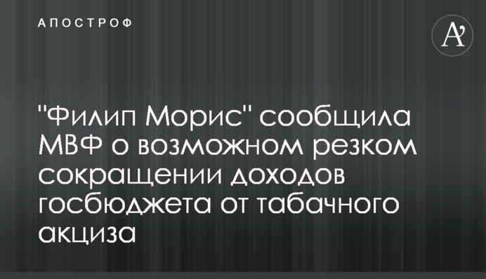 Крупнейший табачный производитель в Украине и третий крупнейший налогоплательщик Украины - компания "Филип Моррис Украина" проинформировала постоянное представительство Международного валютного фонда в Украине о том, что в январе 2021 компания вынуждена резко снизить заказ акцизных марок - с запланированных 50 млн до 35 млн штук.