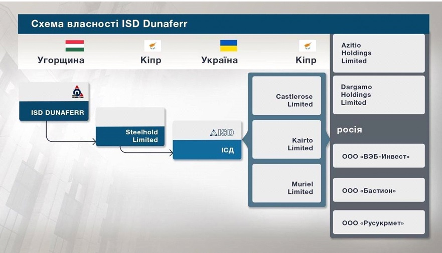 Фото - структура собственности и связей ВЭБ.РФ, венгерской ISD DUNAFERR и чешской Vitkovice Steel.