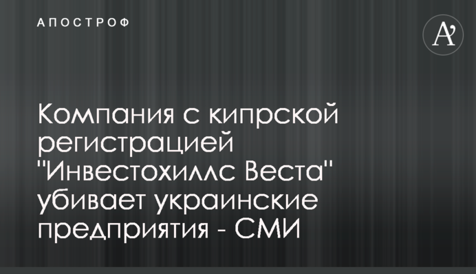 Финансовая компания "Инвестохиллс Веста", которой СМИ приписывают российские корни, фактически убивает украинские предприятия.