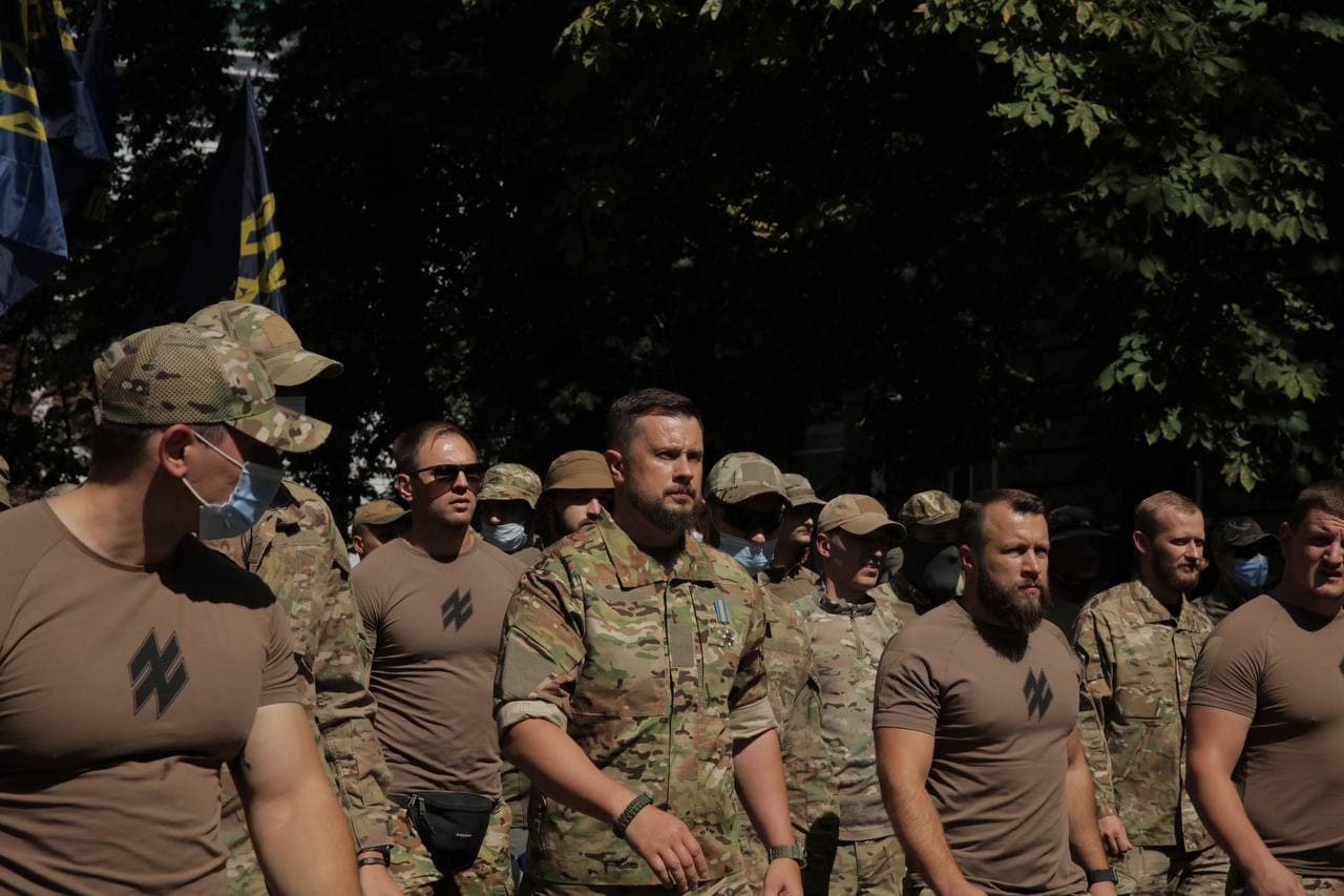 Несколько тысяч активистов вышли на акцию протеста против капитуляции и политических репрессий к Офису президента Владимира Зеленского, организатором которой является партия "Национальный Корпус".