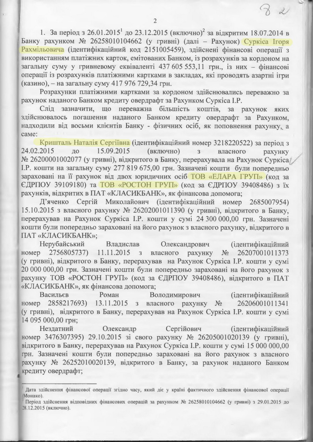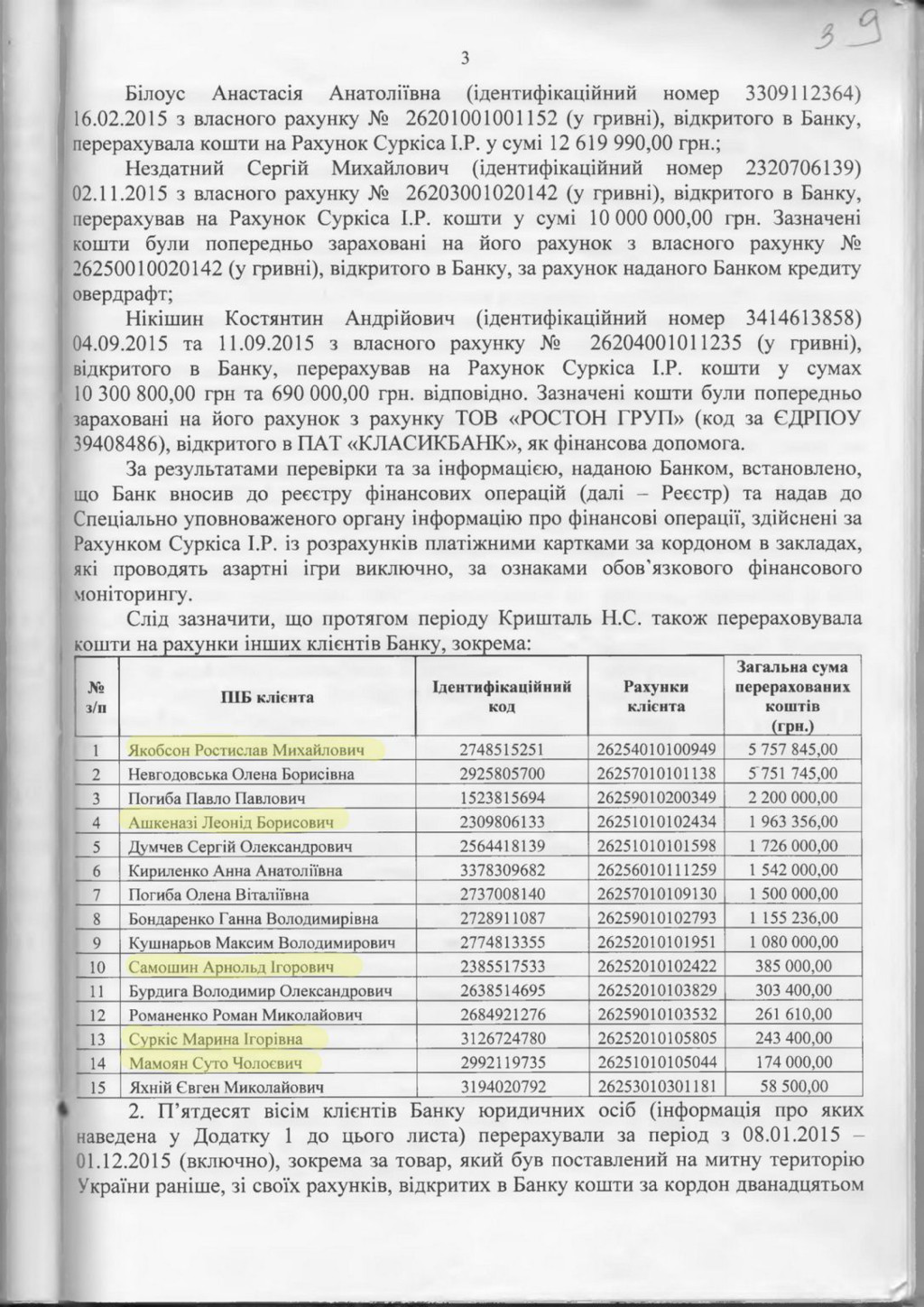 "Доказательство этому - цепочка попадания средств к Суркису, который был нами установлен благодаря документу НБУ, а также постановлениям суда из разных уголовных дел, которые доступны на сайте Единого реестра судебных решений", - отметила она.