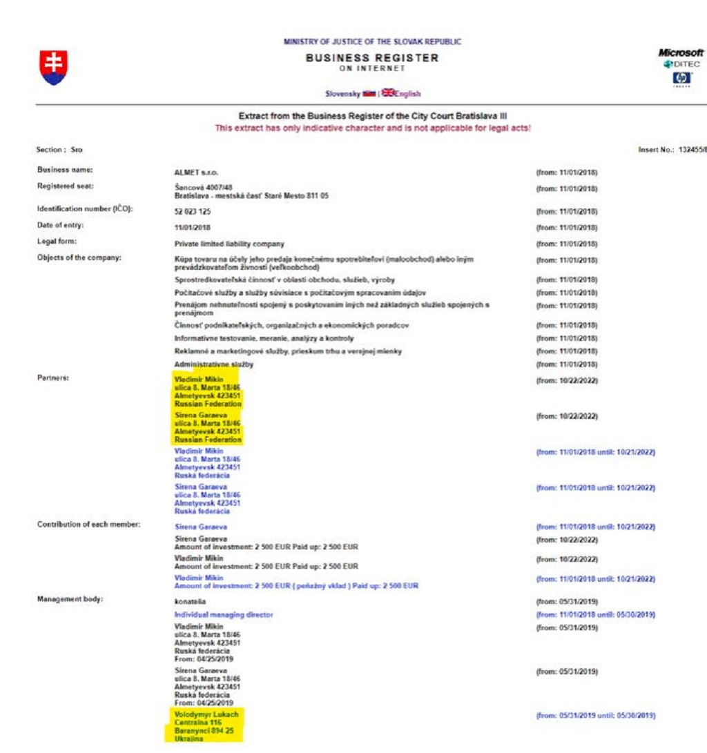 Партнер народного депутата Александра Дубинского по бизнесу в Словакии Владимир Лукач является соучредителем двух бизнесов с российскими бенефициарами.