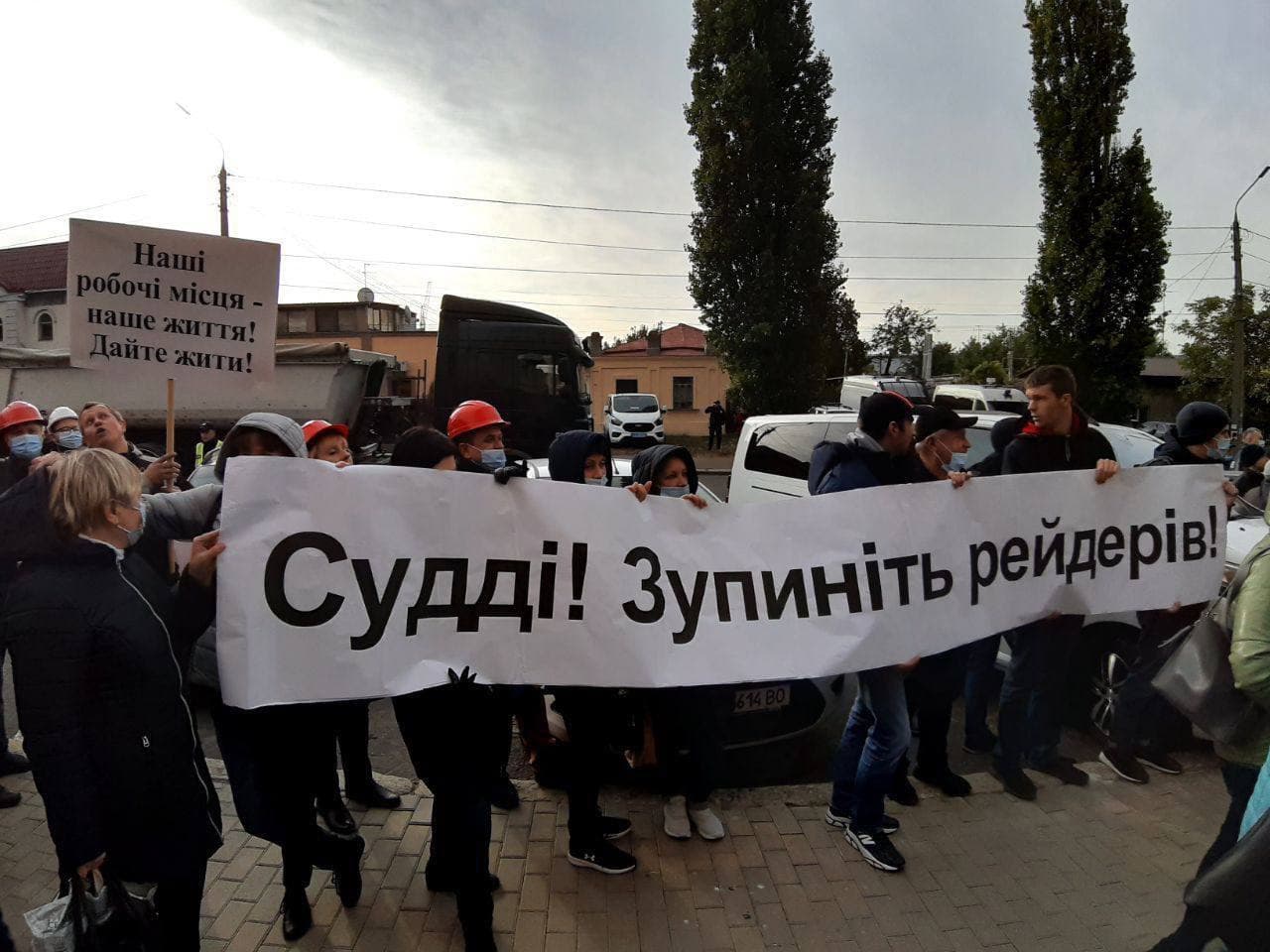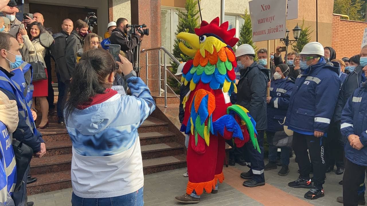Под Николаевским апелляционным судом работники Николаевского глиноземного завода устроили театрализованный перфоманс, показав как заезжий рейдер – крыса, местный активист – петух и адвокат дьявола – черт хотят нажиться за счет "рабочего люда".