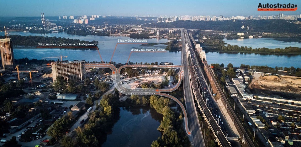 "С ноября текущего года, после прохождения всех согласовательных и подготовительных этапов компания планирует начать строительство опор заезда на мост и второго съезда на набережную в сторону моста Патона", - говорится в материале.