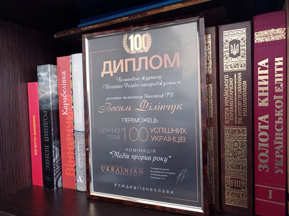 Телеканал Апостроф TV одержал победу в номинации "Медиа прорыв года" в рамках V ежегодного конкурса "100 успешных украинцев", который проводил журнал Ukrainian People.