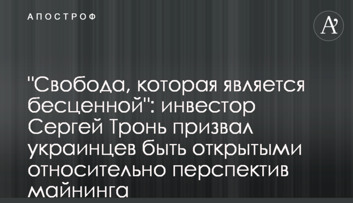 Об этом в интервью Forbes рассказал украинский инвестор Биткоин-индустрии, владелец компании White Rock Management Сергей Тронь.