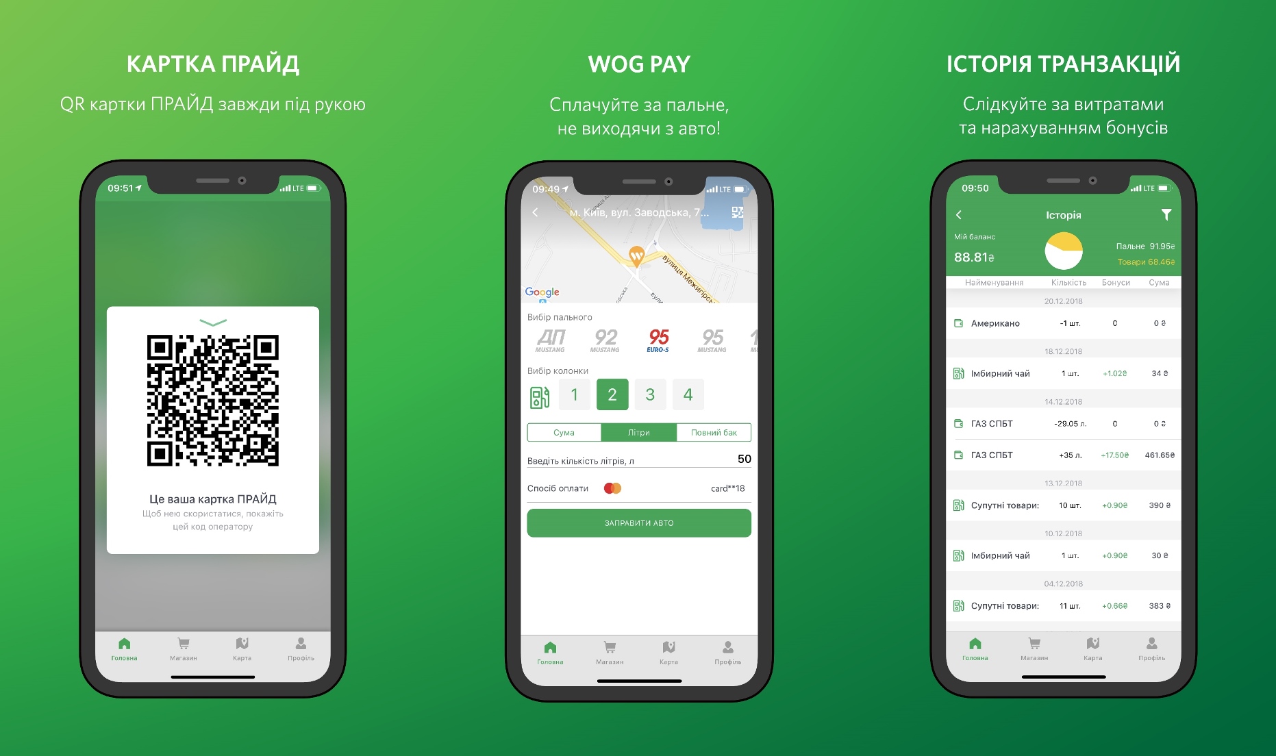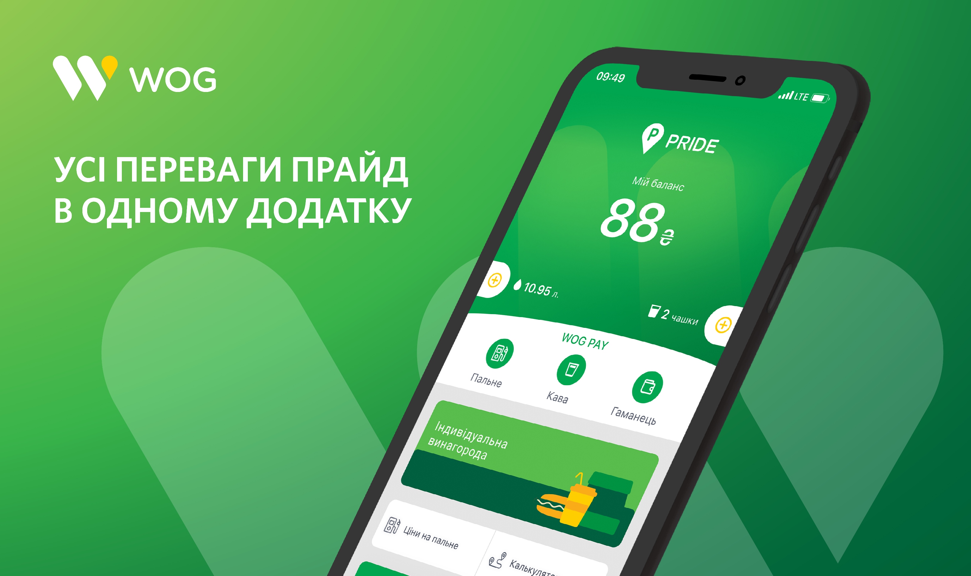 PRIDE – мобильное приложение сети АЗК WOG и сети городских кафе WOG CAFE, которое предоставляет все опции программы лояльности ПРАЙД. На сегодняшний день количество установок приложения WOG PRIDE превышает 700 000.