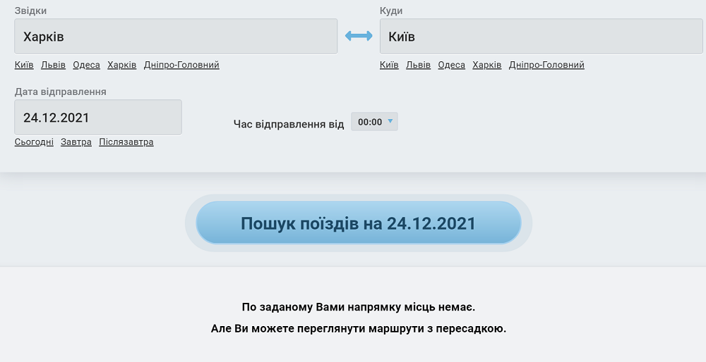 Нельзя купить билеты Киев - Харьков