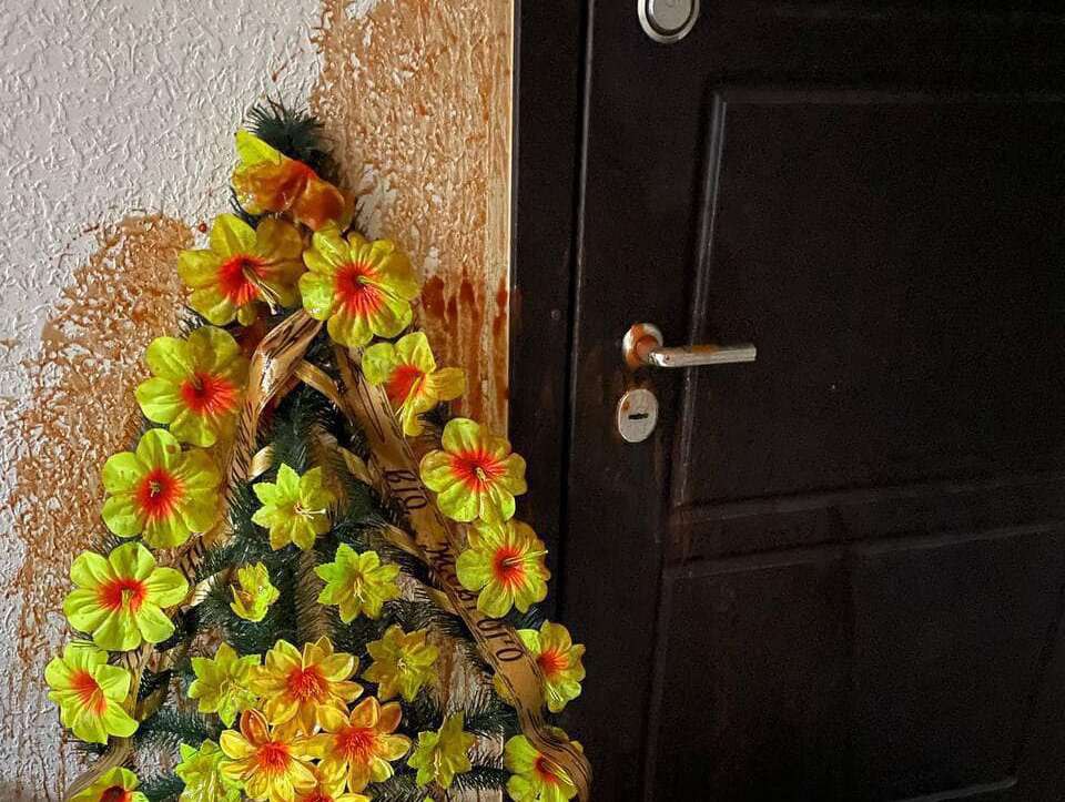 "Сашку Ярмоленко бандиты-теневики передали поздравления. Традиционным для бандитов способом – венок и разлитая кровь. Рядом с детской коляской. Пользуясь случаем, передаю привет бандитам и ворам, лишенным возможности воровать акциз из табака и водки в армии. Ваше время ушло и больше не больше. придет. "Заработков" на воровстве больше не будет. Если же захотите испытать судьбу, продолжив воровать - сядете. Это в лучшем случае", - написал Гетманцев.