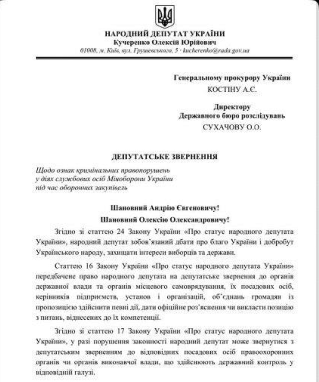 "Представьте, сколько "мавиков", средств защиты и прочего такого жизненно-необходимого имущества можно было приобрести за эти 350 млн грн?", – пишет Кучеренко.