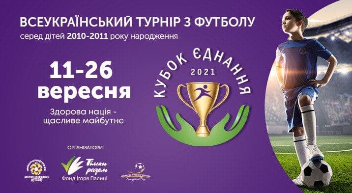 С 11 сентября в Украине начинается серия игр по футболу "Кубок единения-2021" среди команд с возрастом участников 10-11 лет. Это самый масштабный футбольный детский турнир в стране, инициированный и организованный благотворительным Фондом Игоря Палицы "Только вместе", приуроченный к 10-летию организации. Партнерами турнира выступили ОО "Украинская ассоциация развития детского и юношеского футбола" и БФ "Развитие футбола Украины".