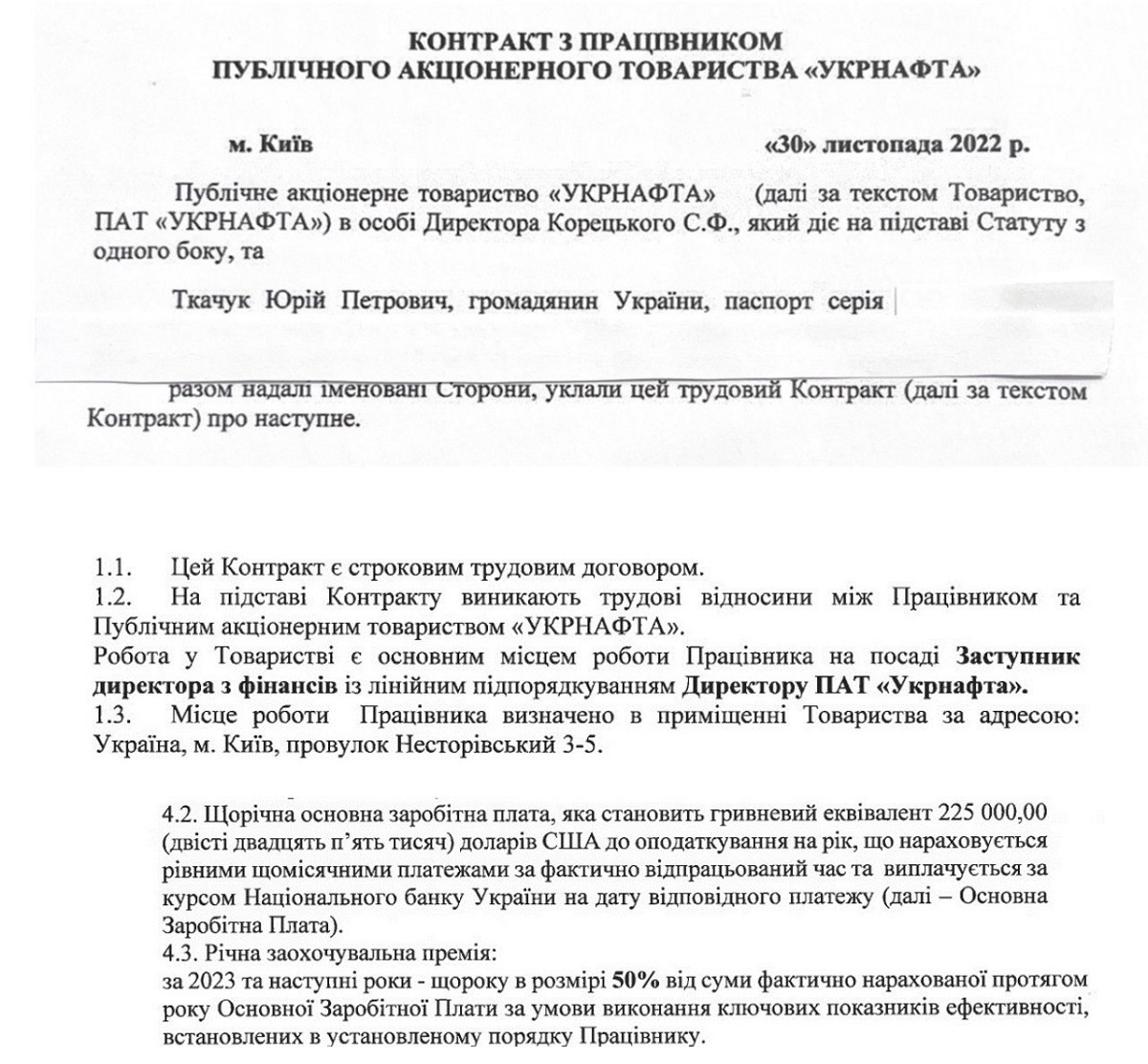 Также Корецкий заключил контракт и с Юрием Ткачуком, возглавившим финансовое направление. Здесь предусмотрена ежемесячная зарплата в размере более $28 000 в месяц с учетом годовой премии – около 1 млн грн/мес.