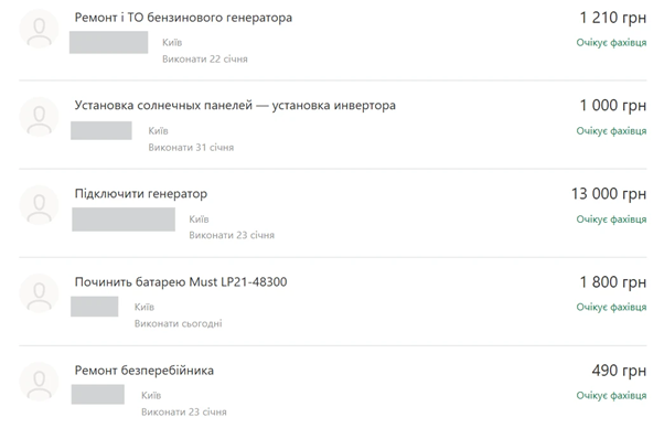 Ремонтные работы также обеспечивают стабильный доход. Например, обслуживание генераторов в среднем оценивается в 1500 грн, ремонт бензиновых генераторов и инверторов — около 1400 грн, а даже более мелкие задачи, такие как ремонт UPS или стабилизаторов напряжения, регулярно приносят 500–1000 грн.