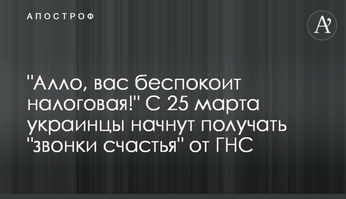 С 25 марта в Украине заработает пилотный проект, в рамках которого украинцам будут звонить по телефону работники Государственной налоговой службы для напоминания о необходимости уплатить налоги.