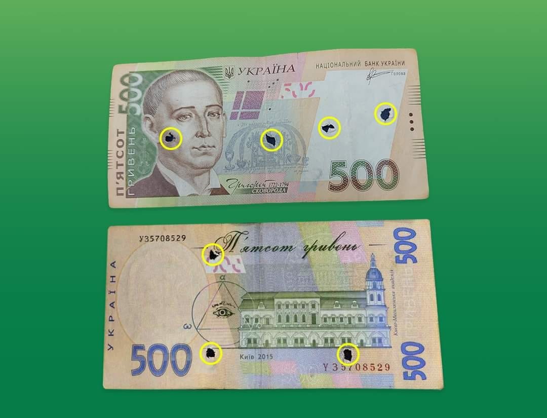 При расчетах в Украине от банкнот с отверстиями или другими повреждениями лучше отказываться – при невозможности вывезти гривну с оккупированных территорий работники банков намеренно повредили деньги, чтобы помешать дестабилизации экономики Украины.