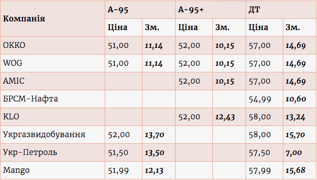В частности, на WOG и ОККО бензины марок А-95 и А95+ подорожали на 11,14 и 10,15 грн/л, до 51,00 грн/л и 52 00 грн/л соответственно. Дизельное горючее в этих сетях подорожало на 14,69 грн/л, до 57 грн/л.