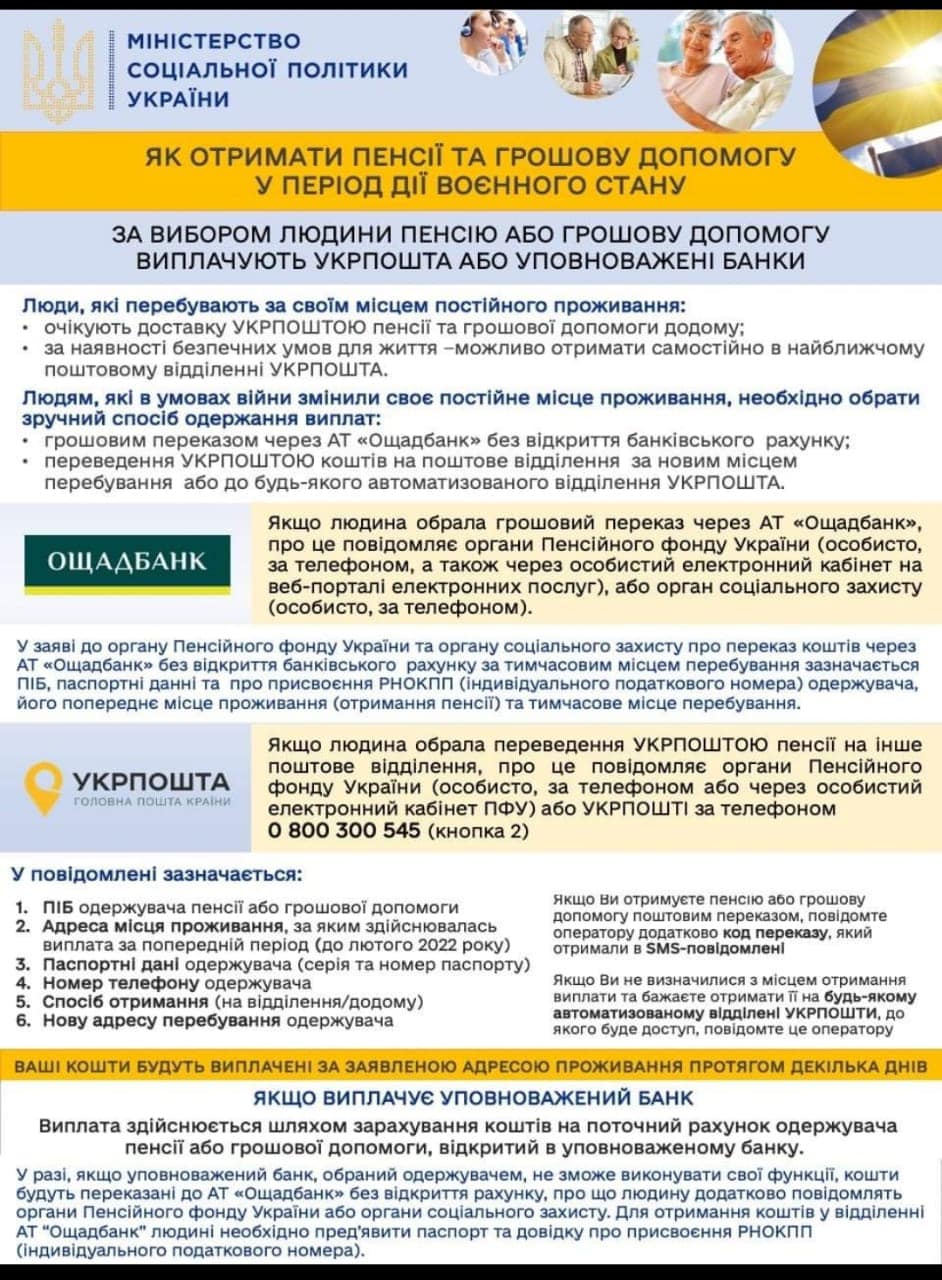 В этом случае нужно предоставить заявление в отделение Укрпочты, в котором будет указано: ФИО получателя пенсии или денежной помощи; адрес проживания, по которому производилась выплата за предыдущий период (до февраля 2022 года); паспортные данные; номер телефона; способ получения пенсии и новый адрес получателя.