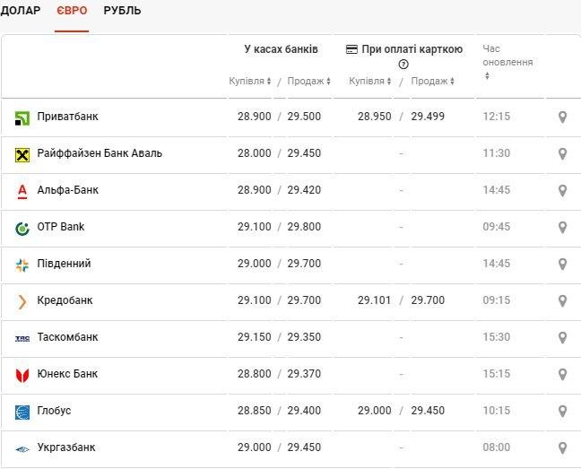Следует отметить, что также изменился курс евро, теперь он стоит 29,13 гривен, и курс рубля – 0,36 гривен соответственно.