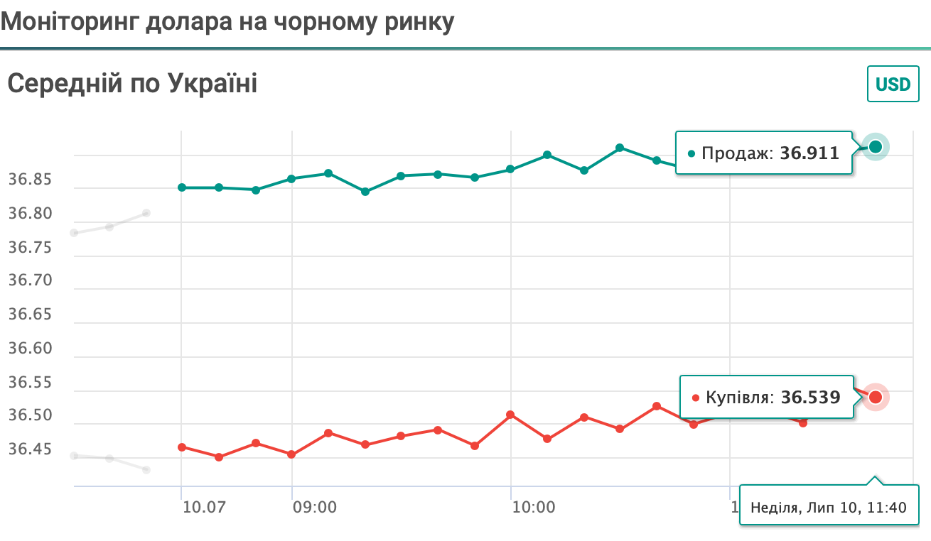 Сейчас курс доллара к гривне составляет 36,51 грн/долл в покупке (еще вчера, 9 июля, было 36,15 грн/долл), в продаже – 36,91 грн/долл (9 июля было 36,60 грн/долл).