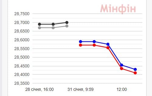 В понедельник, 31 января, в Украине резко упал курс доллара США. Если в пятницу, 28 января, за один бакс давали 28,98 грн, по курсу Нацбанка, то в начале текущей недели американская валюта ослабла ровно на 20 копеек – до 28,78 грн. Однако на межбанке он упал до 28,41 грн.
