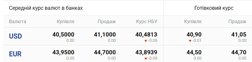 - покупка - 40,5000 грн (без изменений относительно предыдущего дня);
