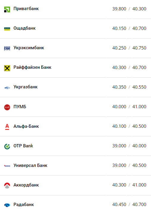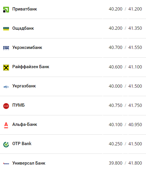 Дешевле всего среди банков продает европейскую валюту Альфа-Банк – 40,95 грн/евро.