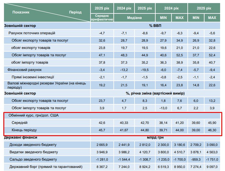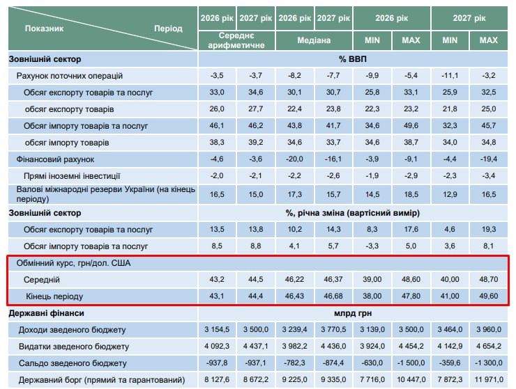 Министерство экономики подготовило консенсус-прогноз с целью освещения видения предполагаемых сценариев развития украинской экономики в условиях войны РФ против Украины. По предварительным подсчетам, курс доллара достигнет 50 гривен до 2027 года.