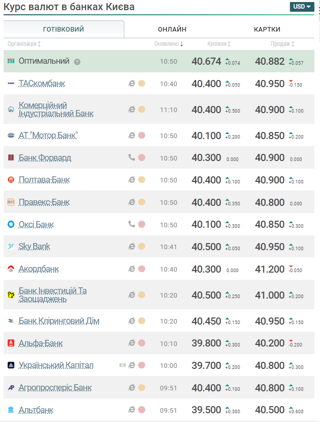 В частности, доллар ниже 40 гривен продают следующие финучреждения: Креди Агриколь Банк – 39,950, Укрсиббанк – 37,570, ОТП Банк – 39.500, Банк Альянс – 39.950, Айбокс Банк – 39.950.