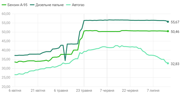 По данным Консалтинговой группы "А-95", с 15 по 18 июля на заправках некоторых украинских операторов упали цены на ДТ, пишет enkorr. Таким образом, средняя стоимость этого вида горючего снизилась на 55 копеек и составила 55,64 гривны за литр.