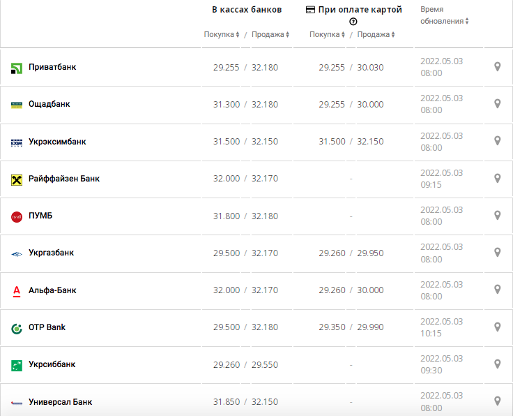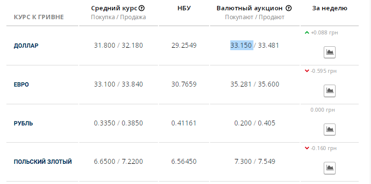 Курс валют в украинских банках также оптимистичен. Сегодня ситуация выглядит таким образом.