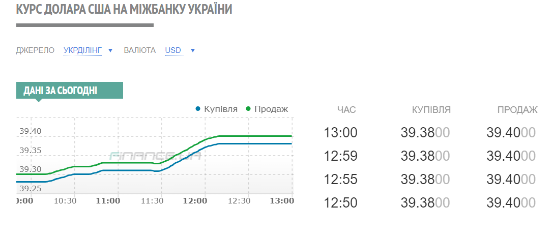 - Укрэксимбанк - 39,0 - 39,6 грн.