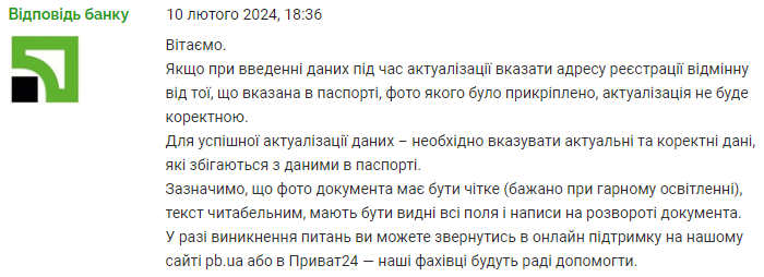 В самом банке ответили, что во время актуализации нужно указать адрес регистрации именно тот, который указан в паспорте. К тому же фото документа должно быть четким, а текст читабельным.