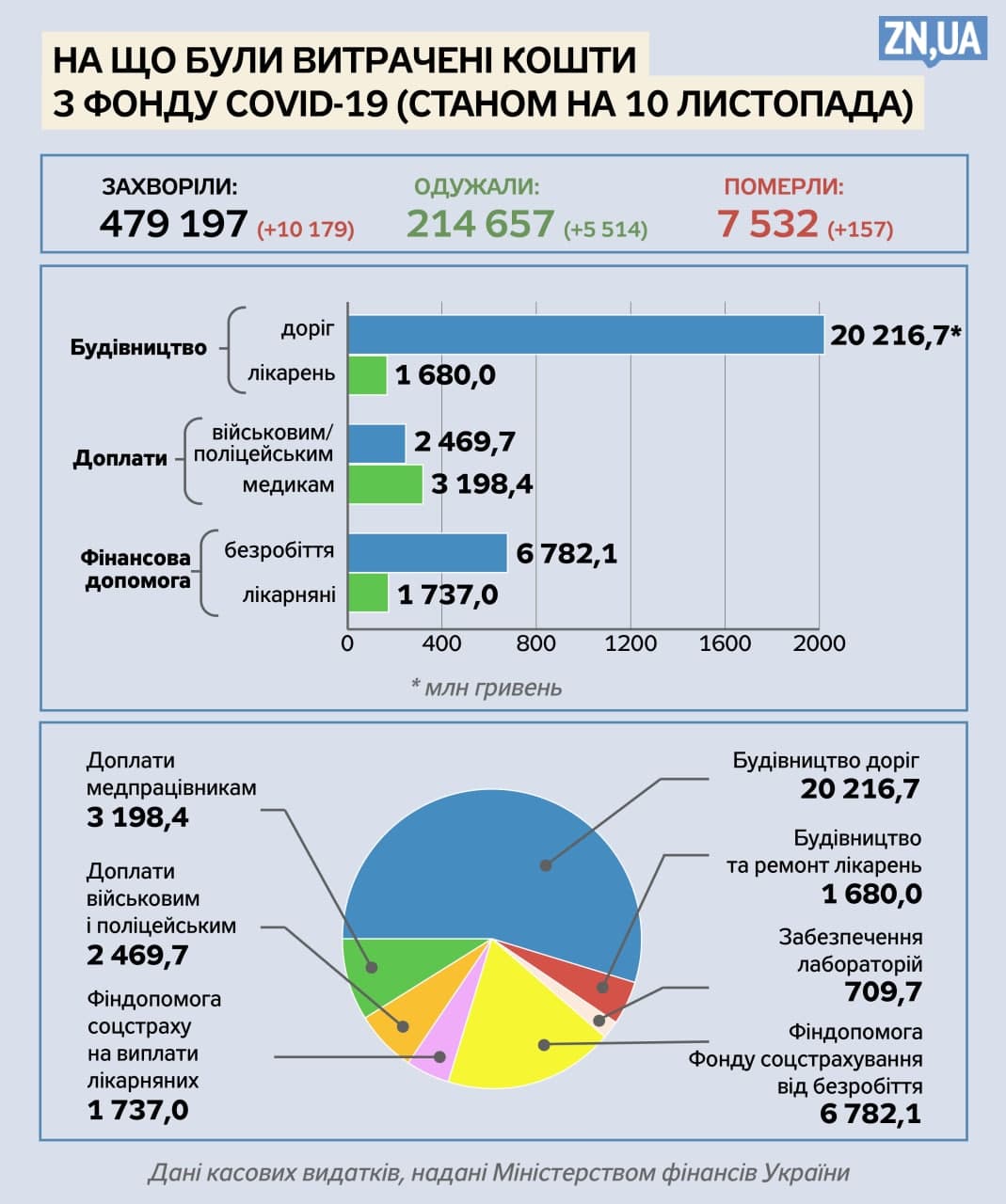 На ремонт больниц потратили 1 680,0 млн гривен, а на восстановление дорог из фонда потратили 20 216,7 млн грн.